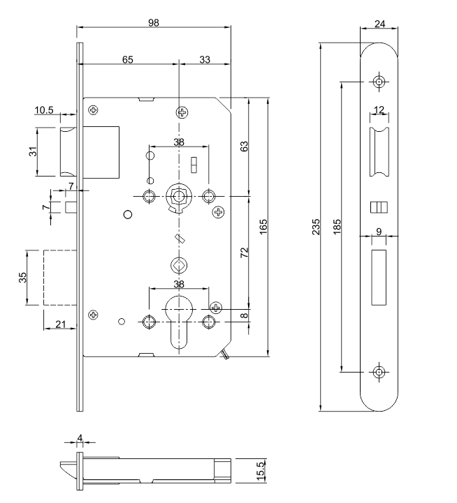 监控点:斜舌,方舌,保险舌,把手,钥匙