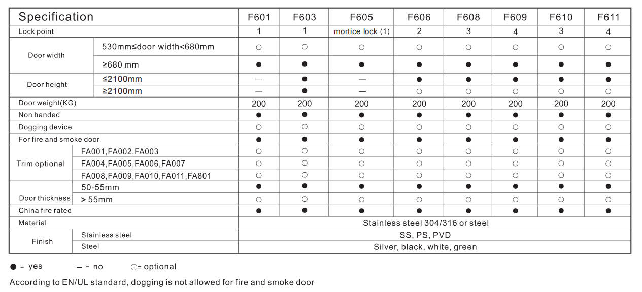 1.Certificate:ANSI/BHMA A156.3 grade 1,cycle test 500,000 times