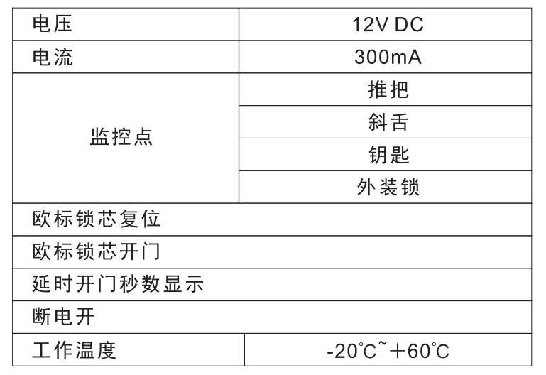 3、门锁标配把手监控,钥匙监控、保险舌监控,用户不能自行增减