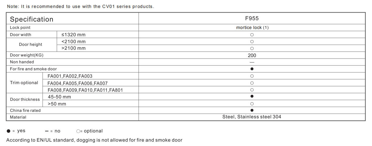 1.符合ANSI/BHMA A156.3-1级,50万次寿命测试